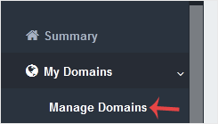 3. After a successful login, select Manage Domains from the My Domains drop-down menu.