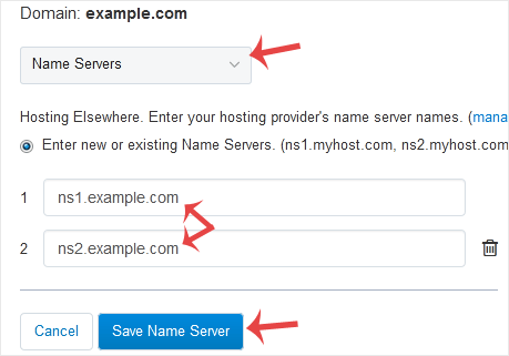 6. Enter your nameservers in the provided text boxes, and click on Save Name Server to save your changes.
