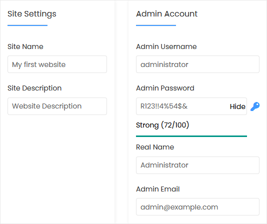 - Admin Username: Your new Textpattern username (for security reasons, do not use the administrator or the admin username).